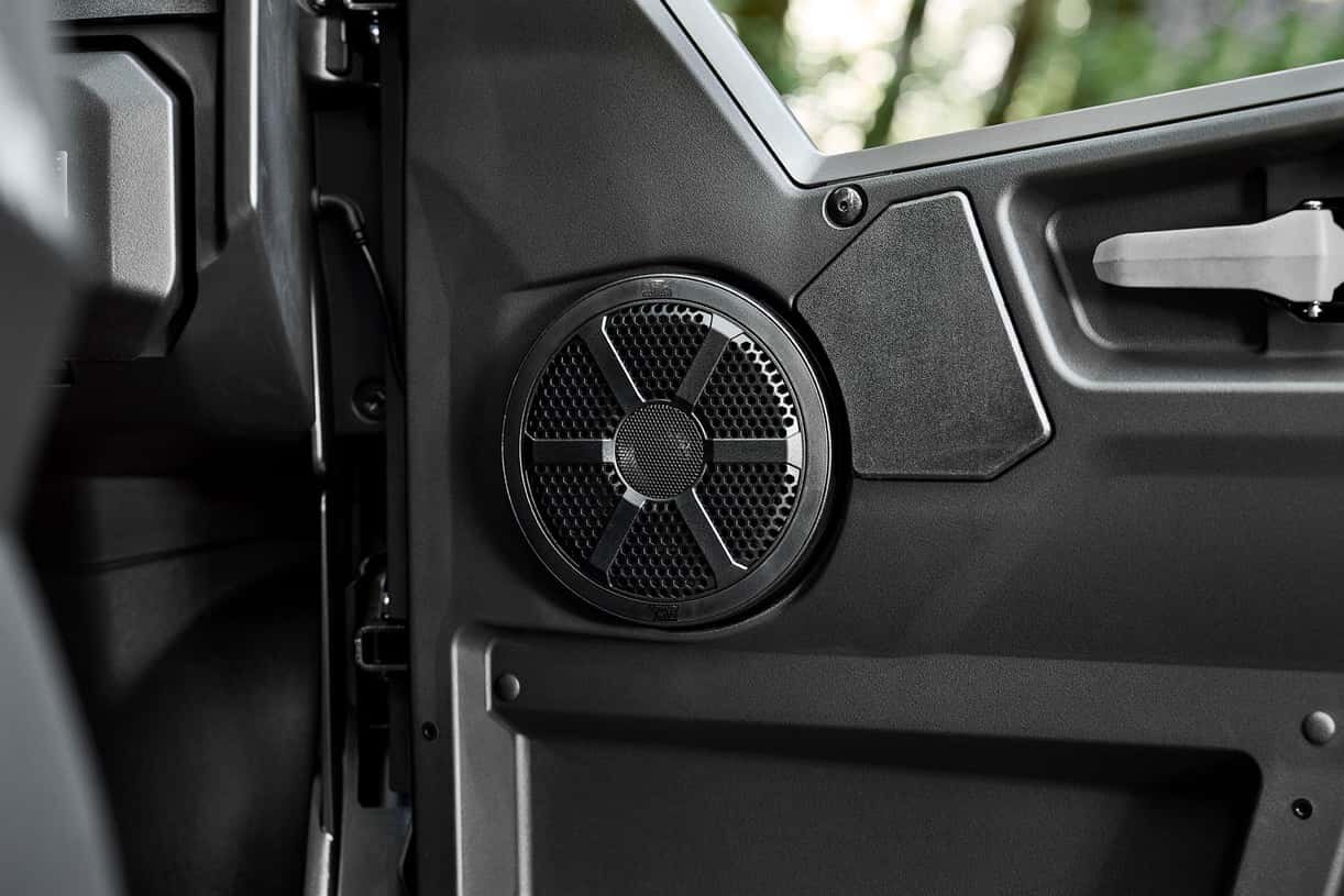 • A three piece, easy-to-open door design features a steel inner structure, a molded outer door skin and a molded inner door panel for a quality feel. The robust inner door handles keep the mud out to work smoothly, even in the harshest of conditions. The doors feature integrated snap out speaker panels for easier upgradability, and soft touchpoints for an automotive feel so occupants are kept comfortable for all-day driving. To ease entering and exiting the vehicle, the front doors feature an enlarged opening, 63% wider than previous Wolverine models. Further increasing comfort, the front shoulder bolster shapes were optimized to expand the upper body opening to maintain a great, secure-feeling on the trail for riders big and small.