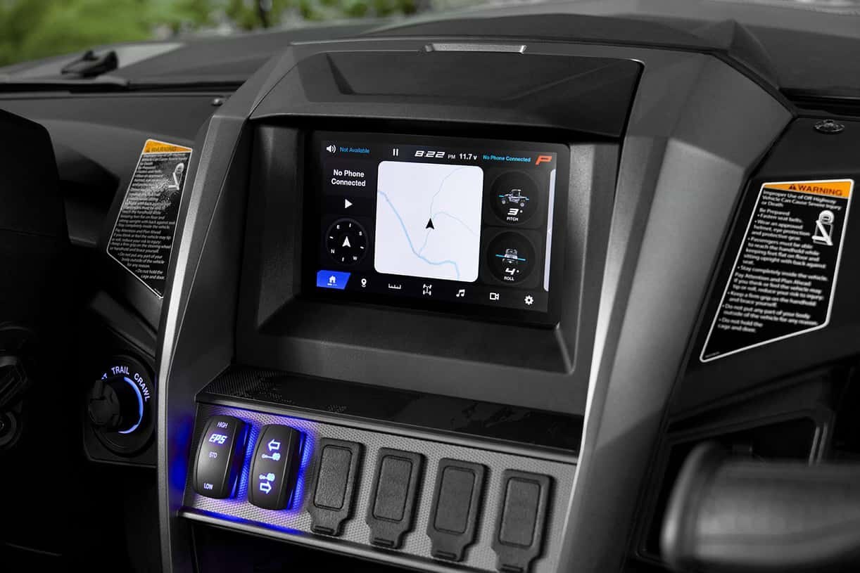 An all-new Yamaha Adventure Pro System takes your journey to the next level with a new seven-inch full-color display neatly integrated into the dash. This advanced adventure tool provides connectivity via Bluetooth or USB, and is loaded with features including navigation compatibility, phone and audio controls, all-new GPS mapping and PIN-lockable geo-fencing, customizable home screen, new drive-mode screen, and a new rearview camera, all combining to offer Yamaha owners added comfort, capability and confidence out on the trail.