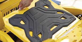 Mow in comfort with overmolded soft-touch hand grips and a rubber floor mat designed to reduce vibration and user fatigue.