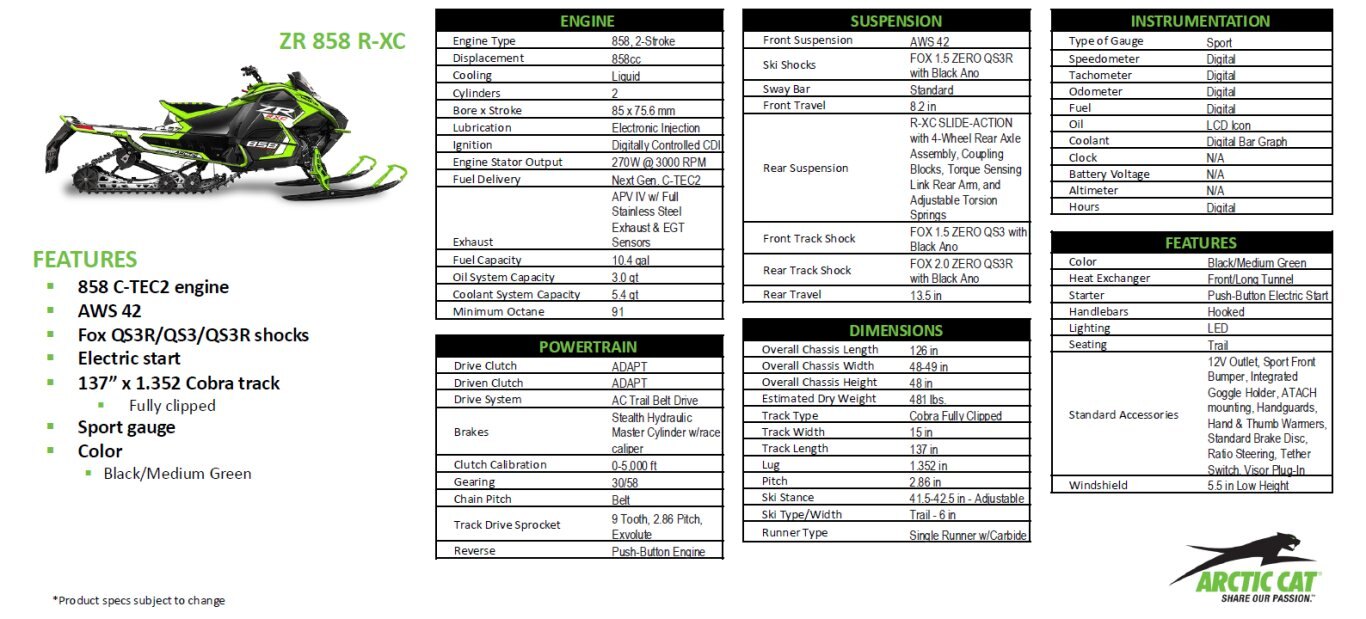 2026 ARCTIC CAT NEW ZR 858 R-XC ES - PLUS ! YEAR EXTENDED WARRANTY