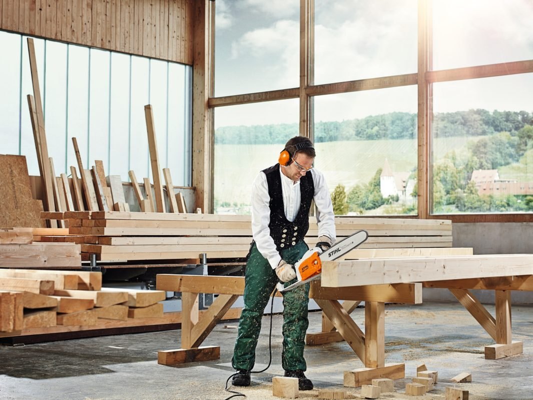 The STIHL MSE 250 is STIHL’s most powerful electric chainsaw designed for building with wood. It is perfect for challenging woodwork applications in the professional finishing trade. Equipped with a high-quality Rapid Super 3 saw chain, it reliably delivers excellent piercing and cutting performance. This means that skilled tradespeople and professionals will find the STIHL MSE 250 electric chainsaw an excellent power tool even for demanding projects.